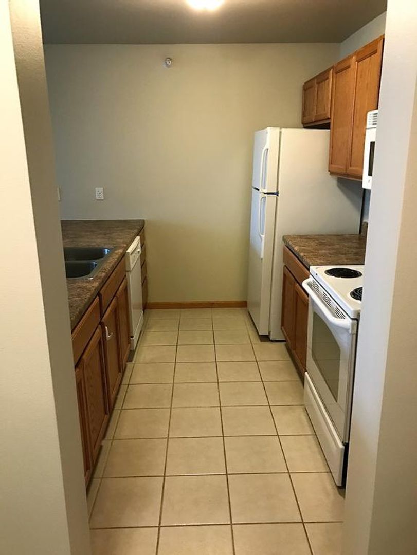 Enjoy country living with the convenience this modern 2Br/1bath apartment $990mo. Located above commercial space with convenient access to shops/ restaurants downstairs/ easy access to highway 965. These 2br/1bath are geothermal units with central air, dishwasher, microwave, gas fireplace, washer and dryer, and 1 car garage. The buildings accessible with secure entrances, and there is extra off street parking. Tenant pays all utilities. Landlord provides trash/lawn/snow removal.
